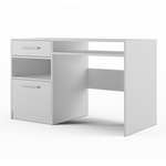 The HAMPTON desk in white is a stylish and functional workspace designed to enhance any room. Featuring a smooth, spacious tabletop, it includes a convenient drawer for storing essentials, along with two open shelves for books or other items. Additionally, a cupboard provides hidden storage for files or other items, keeping your workspace organized and clutter-free. Its clean white finish adds a fresh, modern touch, making it an ideal choice for both home offices and study areas.