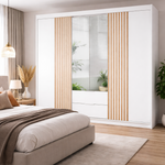 The HARTLEY Wardrobe is a stylish and practical storage solution designed to enhance modern bedrooms. Available in 103cm, 203cm and 250cm widths, it combines contemporary design with generous internal space.