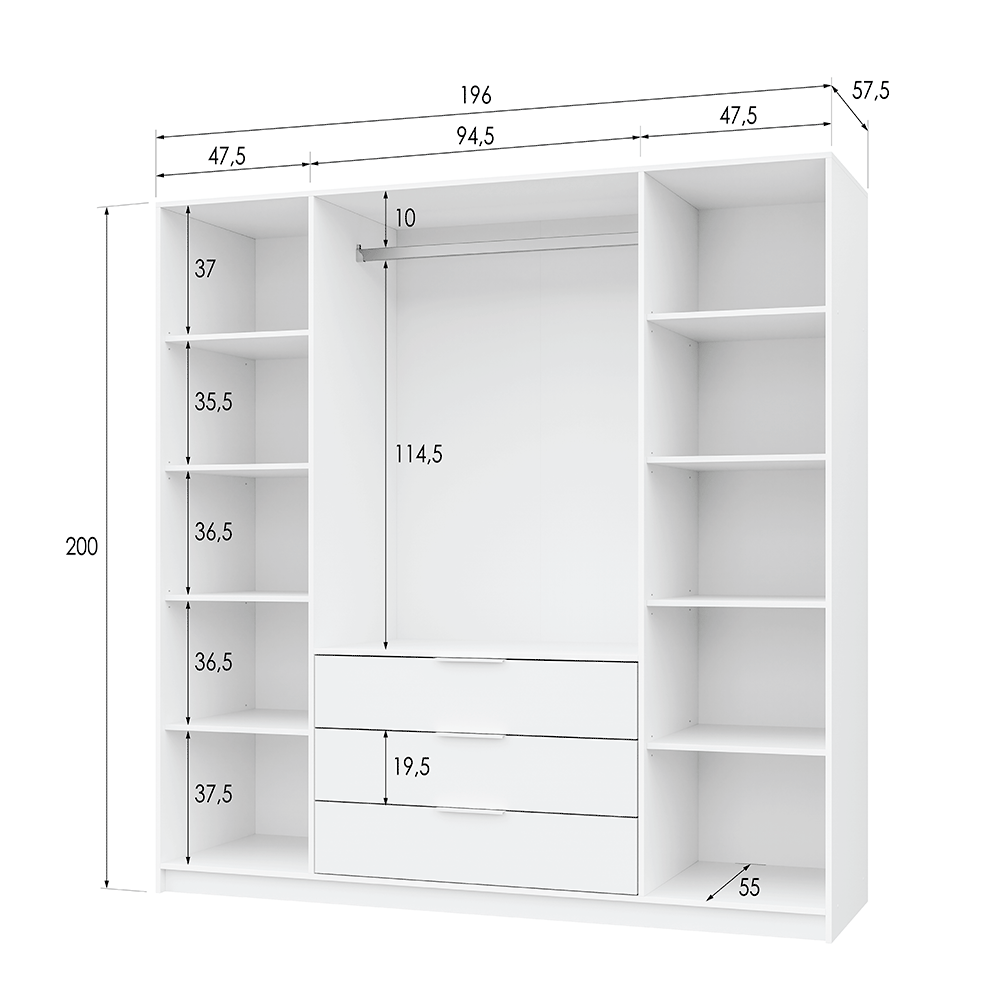 Dimensions (cm): W196 x D57.5 x H200 (cm)